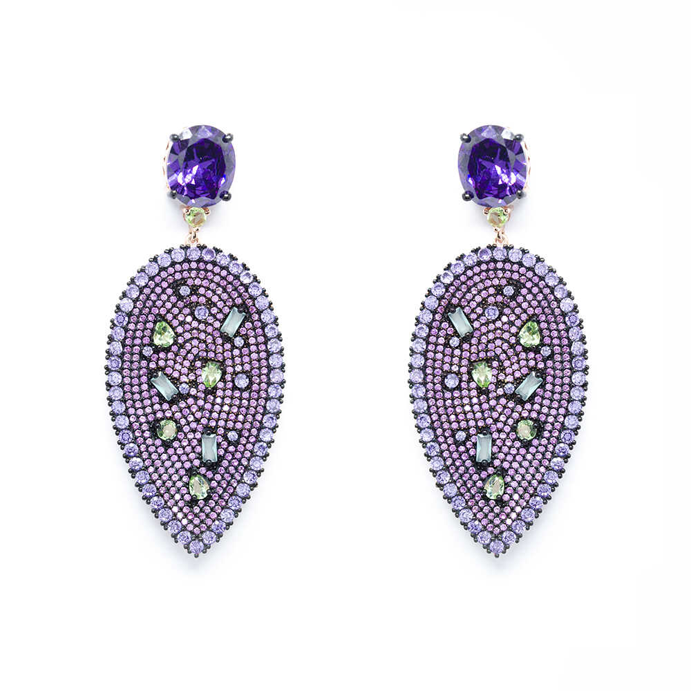 Σκουλαρίκια chandelier ροζ χρυσά με μωβ πέτρες