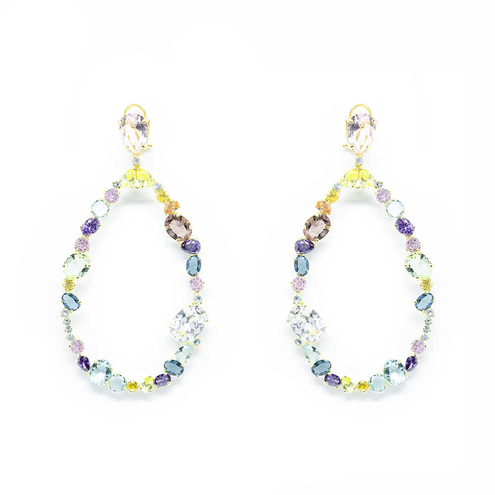 Σκουλαρίκια chandelier χρυσά με πολύχρωμες πέτρες