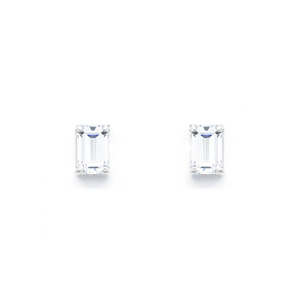 Σκουλαρίκια elegant με baguette cut πέτρες από λευκόχρυσο Κ14