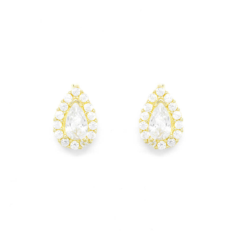 Σκουλαρίκια pear με πέτρες από κίτρινο χρυσό Κ14