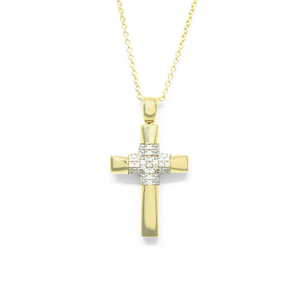 Σταυρός βαπτιστικός από κίτρινο χρυσό 14k με zirgons