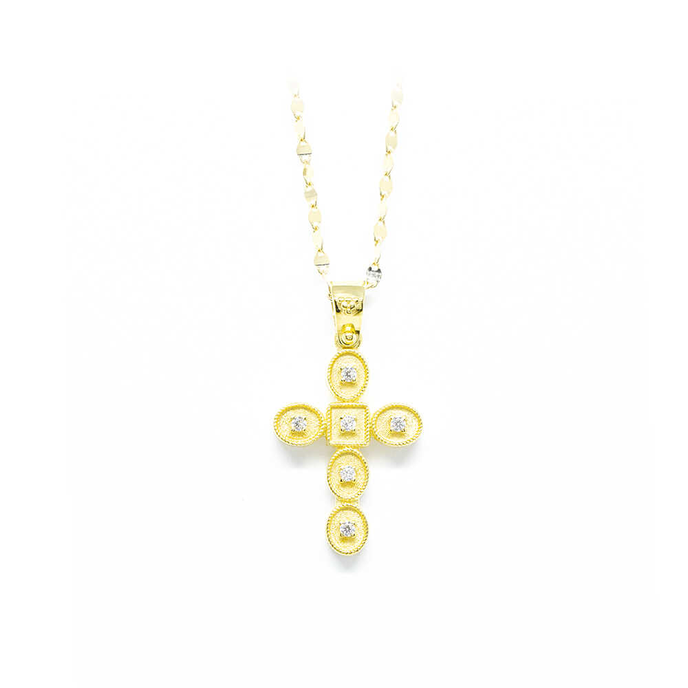 Σταυρός βαπτιστικός με πέτρες από κίτρινο χρυσό 14k