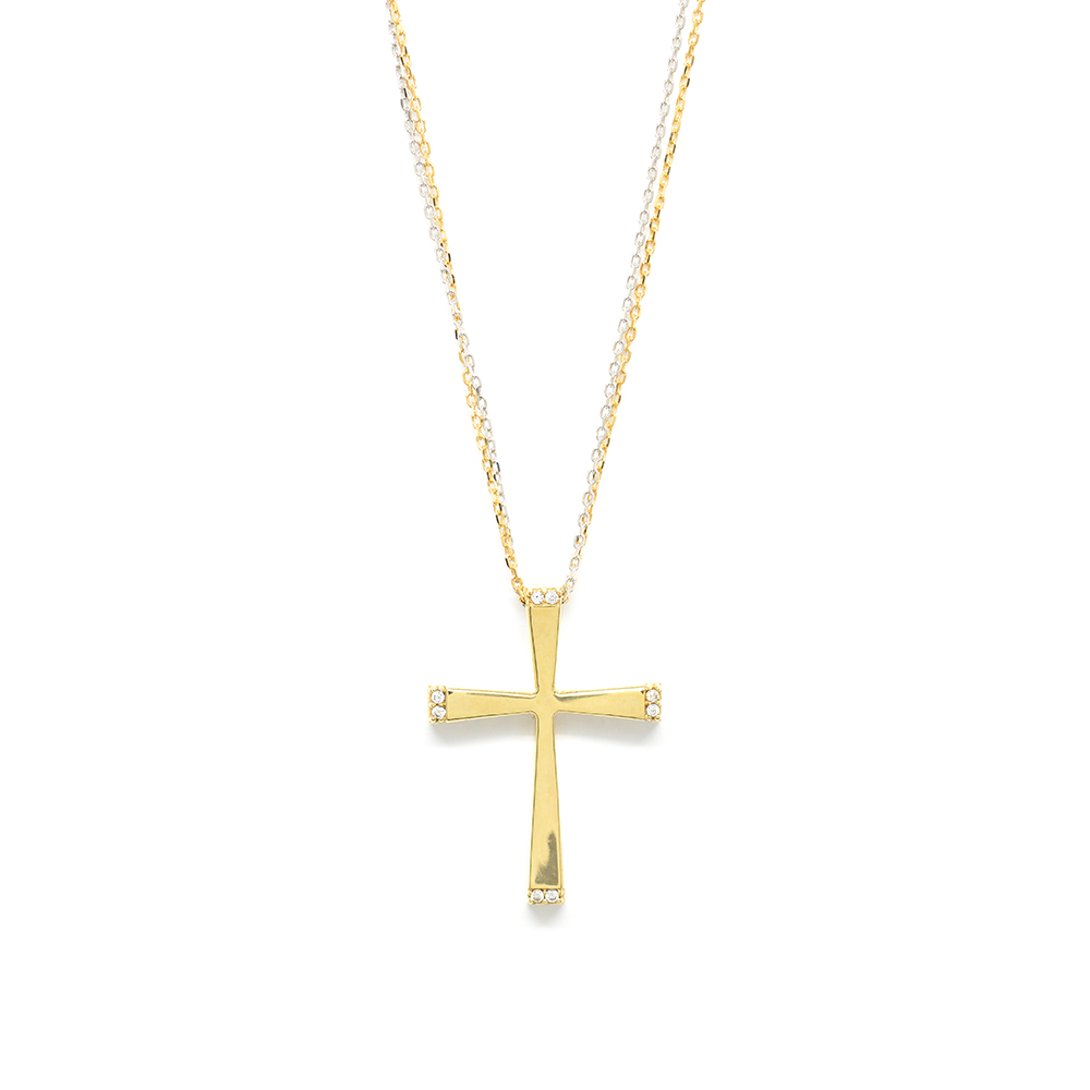 Σταυρός βαπτιστικός μοντέρνος από κίτρινο χρυσό 14k με αλυσίδα.Πακέτο βάπτισης