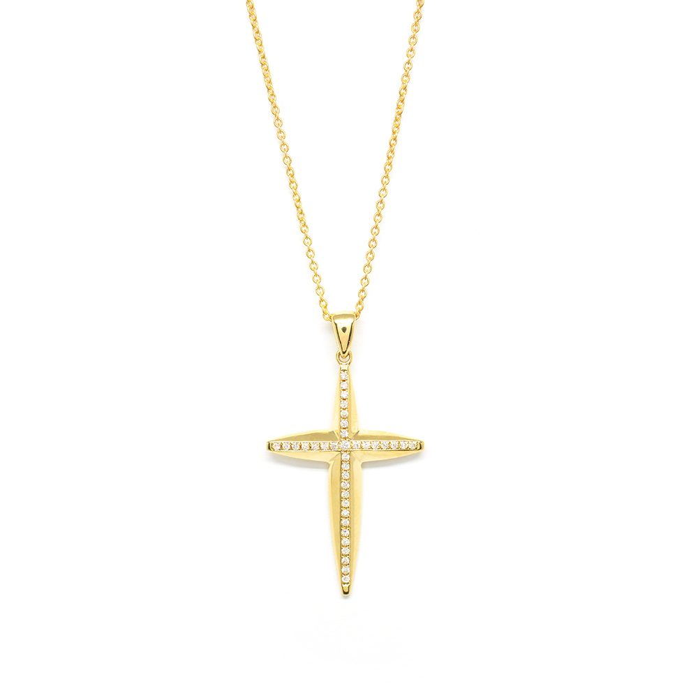 Σταυρός βαπτιστικός μοντέρνος με διαμάντια από κίτρινο χρυσό 18k