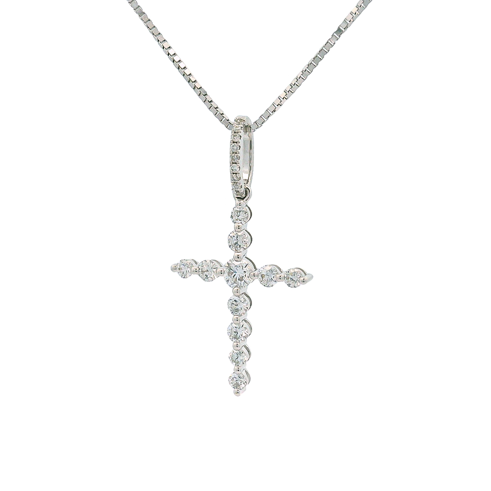 Σταυρός κλασσικός με διαμάντια και λευκόχρυσο 18k