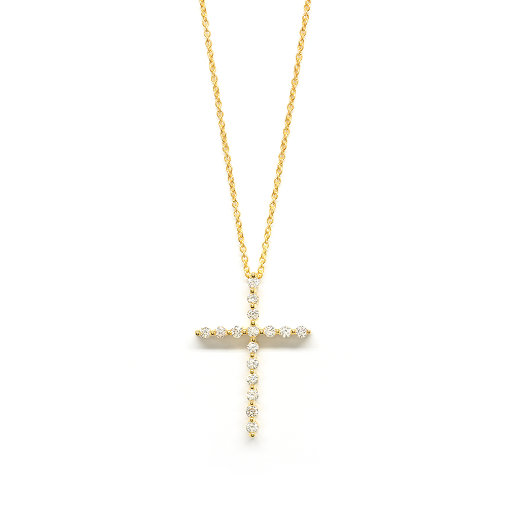 Σταυρός κλασσικός με διαμάντια brilliant από κίτρινο χρυσό 18k