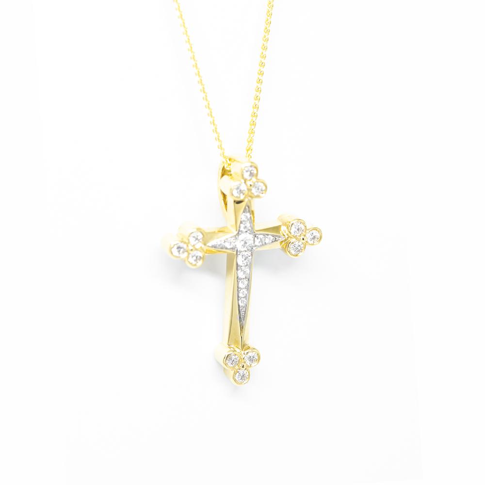 Σταυρός κλασσικός με διαμάντια brilliant και κίτρινο χρυσό 18k