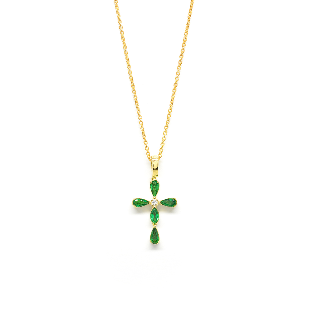 Σταυρός elegant από κίτρινο χρυσό 14k με λευκά και πράσινα zirgons