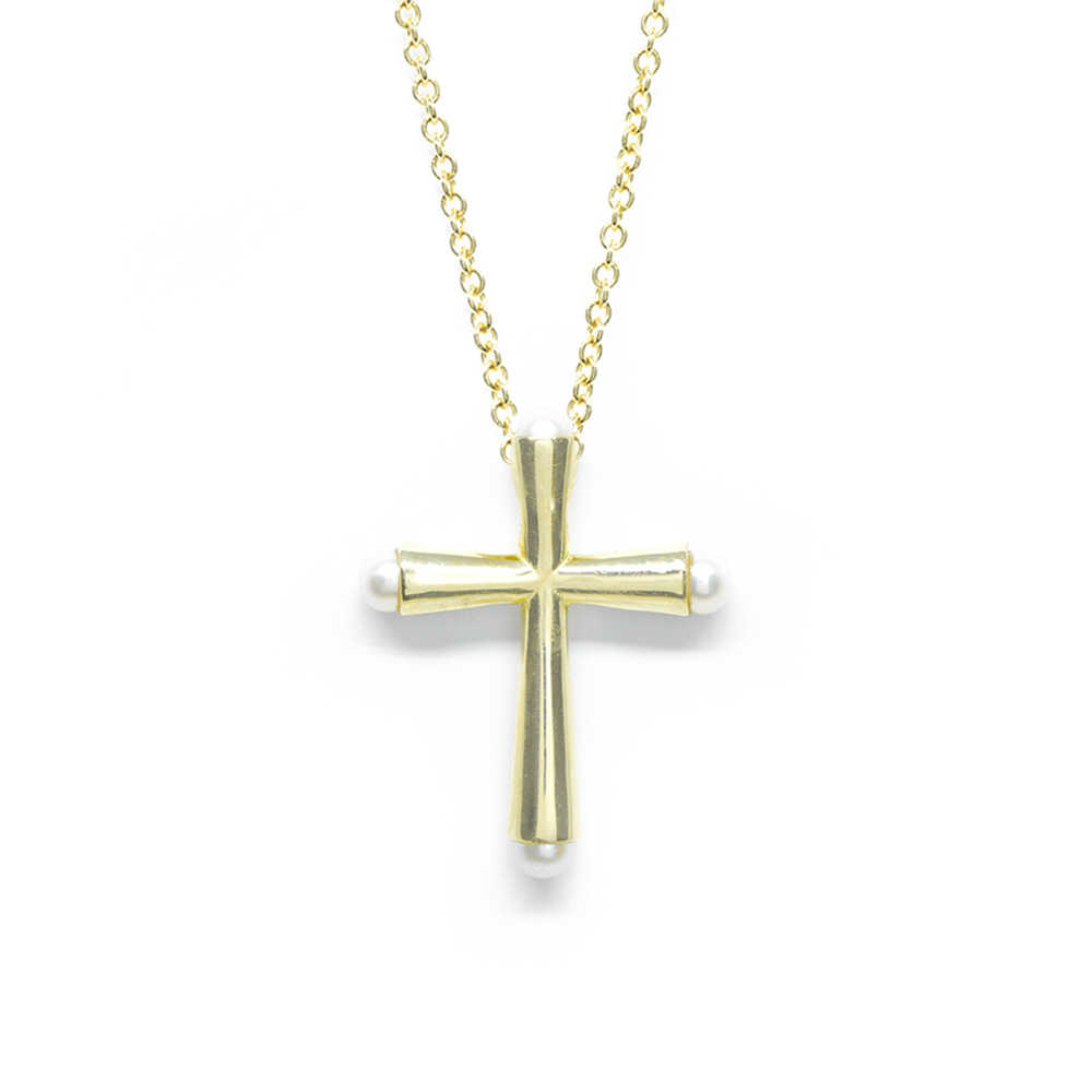 Σταυρός minimal από κίτρινο χρυσό 14k με μαργαριτάρια