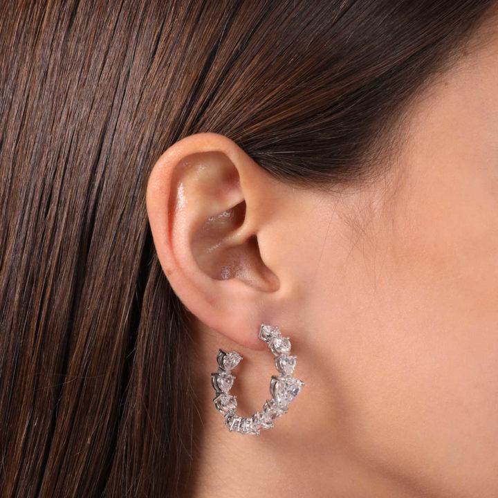 Σκουλαρίκια-κρίκοι ασημένιου χρώματος με διαφανείς καρδιές. Συνοδεύεται από κουτί συσκευασίας CHIARA FERRAGNI και ΕΓΓΥΗΣΗ 2 ΕΤΩΝ της επίσημης αντιπροσωπείας CHIARA FERRAGNI.