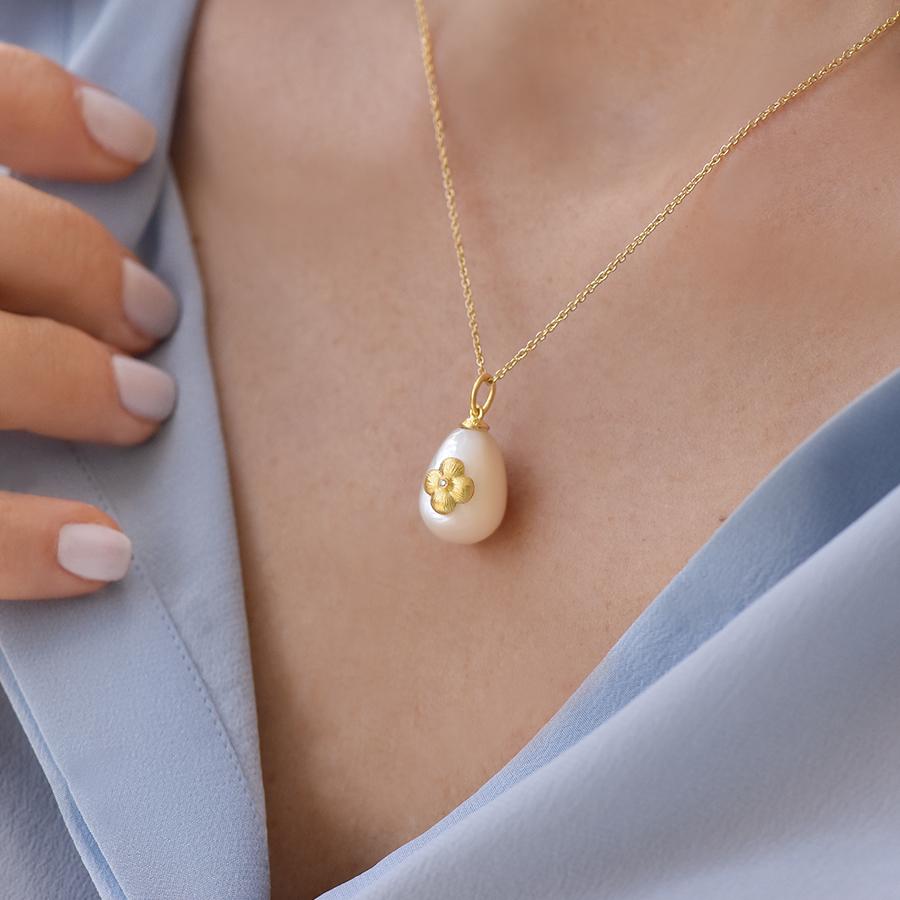 LALAOUNIS DAISY EGG PENDANT IN 18Κ GOLD WITH MOTHER OF PEARL AND DIAMOND