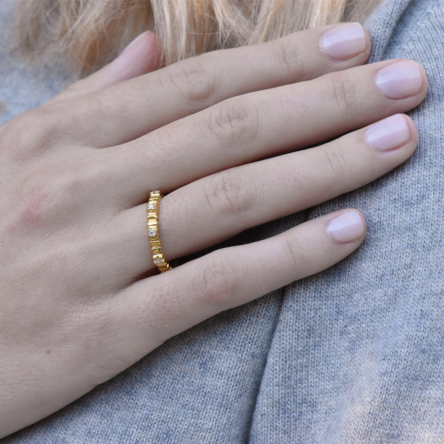 LALAOUNIS NUBIA THIN BAND RING IN 18K GOLD WITH DIAMONDS
