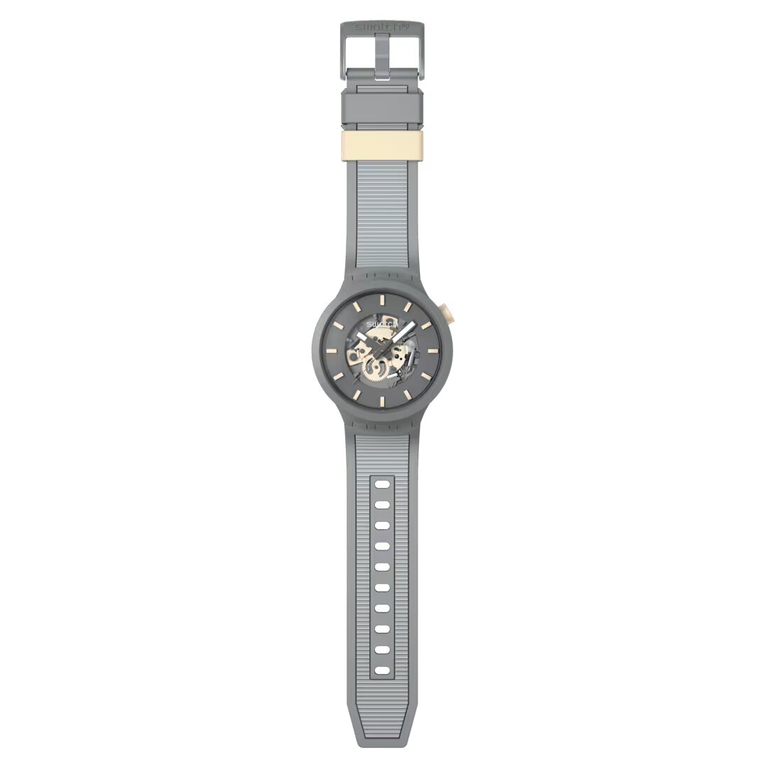Αυτό το υπερμεγέθες ρολόι ξεχωρίζει με το γκρι ανοιχτό καντράν του, το οποίο διαθέτει τρισδιάστατες ενδείξεις με ανοιχτό μπεζ τυπωμένο σχέδιο, γκρι δείκτες ωρών και λεπτών που λάμπουν στο σκοτάδι, γκρι δείκτη δευτερολέπτων και ανοιχτά μπεζ στοιχεία κίνησης, όλα κάτω από τζάμι βιολογικής προέλευσης. Η ματ γκρι κάσα βιολογικής προέλευσης με την αντίστοιχη στεφάνη συμπληρώνεται από ένα ματ γκρι λουράκι με ανοιχτή γκρι δομή, ματ γκρι και ανοιχτές μπεζ θυλάκια και μια μισή αγκράφα σε ματ γκρι χρώμα.