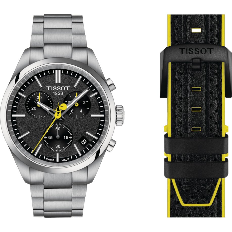 Αυτή η ειδική έκδοση διαθέτει μια κάσα κατασκευασμένη από ανοξείδωτο ατσάλι 316L πολύ ανθεκτική, διασφαλίζοντας ότι το ρολόι διατηρεί την ελκυστικότητά του ακόμη και κάτω από επίπονες συνθήκες. Το καντράν διαθέτει θεματικό μαύρο χρώμα με κόκκους άσφαλτου, που αντανακλά το δρόμο κάτω από τις ρόδες των ποδηλατών. Ο σχεδιασμός ενσωματώνει ένα δεύτερο δείκτη στο εμβληματικό κίτρινο του Tour de France, έξυπνα διαμορφωμένο σαν ποδήλατο. Ο μαύρος δίσκος του παραθύρου ημερομηνίας προσθέτει μια κομψή πινελιάπου συνδυάζεται με τη συνολική αισθητική του ρολογιού. Η κίνηση G10.212 chrono quartz παρέχει ακρίβεια και στιβαρότητα, που συμπληρώνεται από αντοχή στο νερό έως και 10 bar (100 μέτρα/330 πόδια) και η ορατότητα σε συνθήκες χαμηλού φωτισμού είναι εγγυημένη από την επίστρωση Super-LumiNova® στο σχήμα της βελόνας. χέρια. Η πίσω όψη αυτού του μοντέλου Grand Tour PR100 είναι χαραγμένο με το αντίστοιχο λογότυπο του Tour de France.