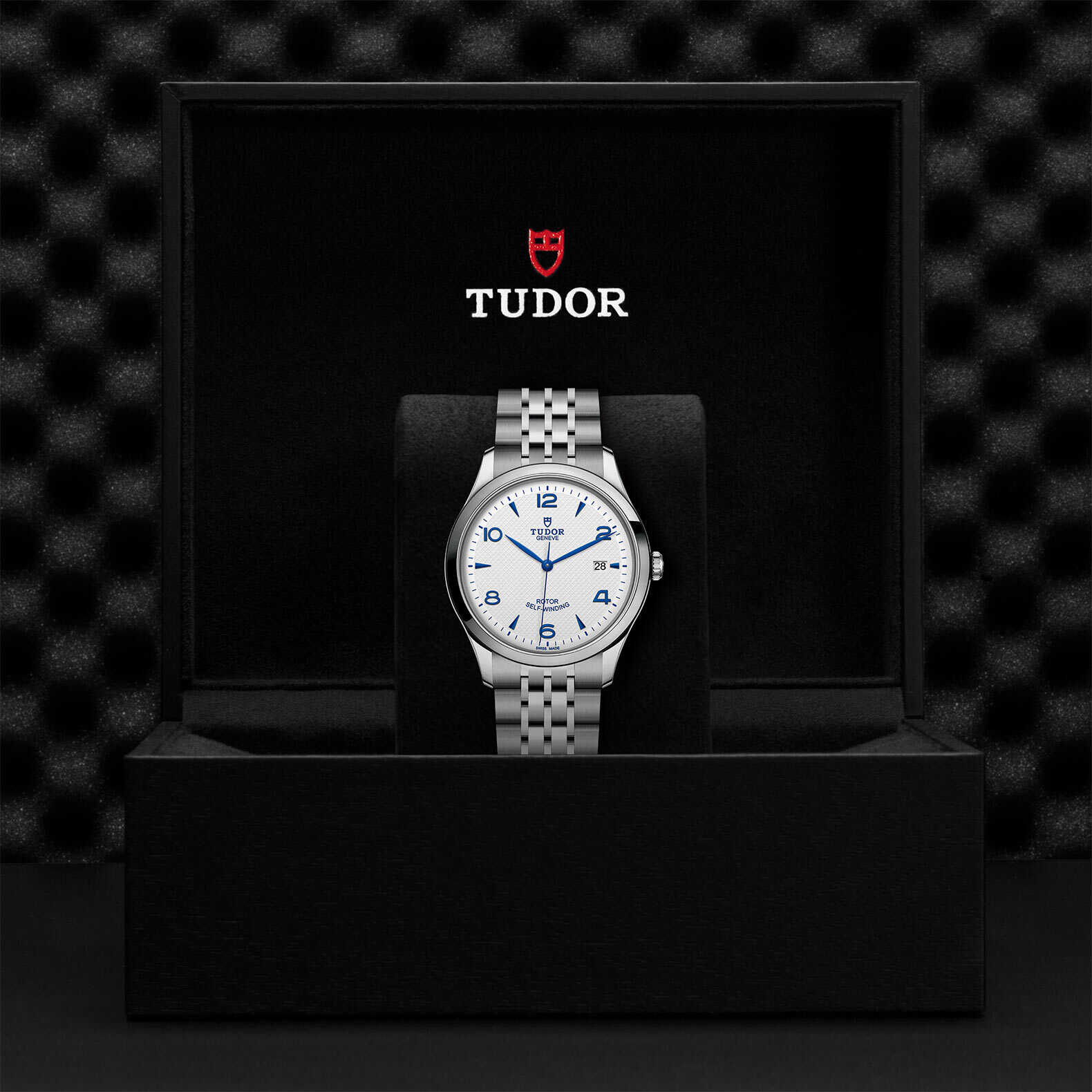 Με τη νέα σειρά 1926 η TUDOR υμνεί την απαρχή της ιστορίας της με μία συλλογή μηχανικών ρολογιών που διακρίνονται για την κομψότητα και τη διαχρονικότητά τους. Αυτόματο ρολόι με μπρασελέ και καντράν από opaline με μπλέ ενδείξεις.